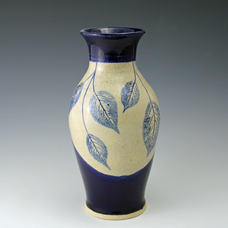 • Decorated with prints of real leaves, underglazes, and glazes