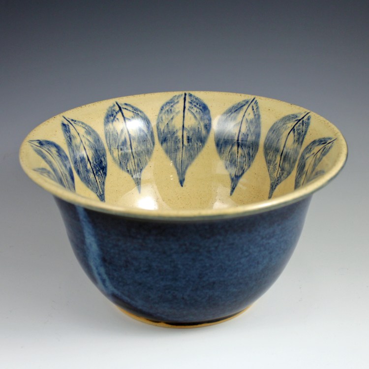 • Decorated with prints of real leaves, underglazes, and glazes
