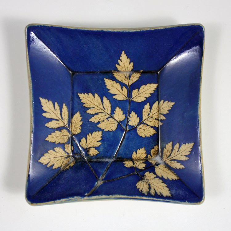 • Embellished with impressions of real leaves, oxides, underglazes, and glazes