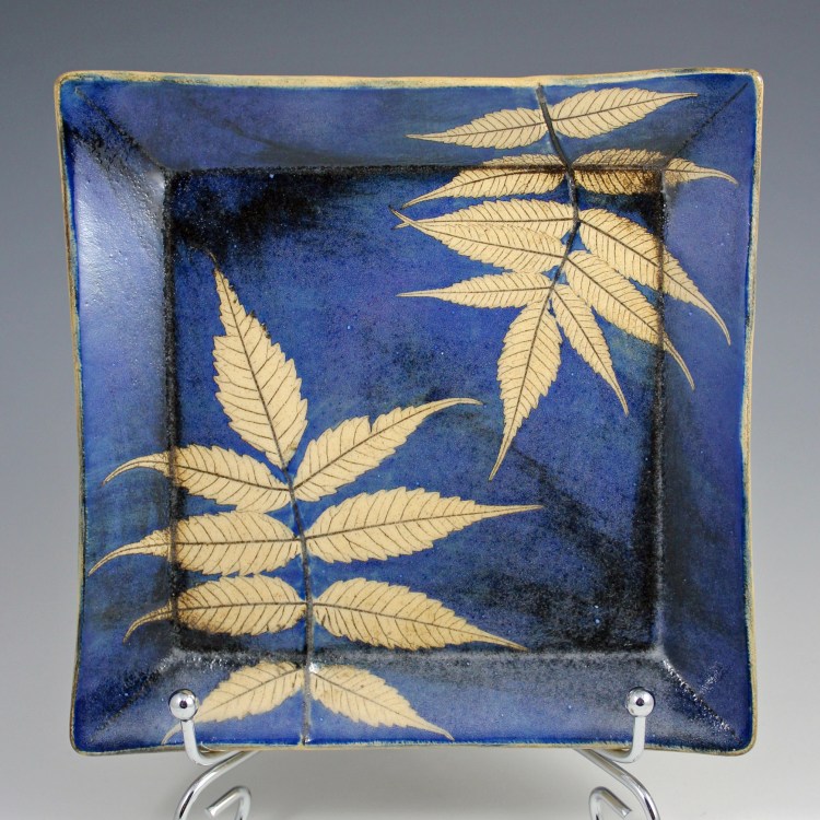 • Embellished with impressions of real leaves, oxides, underglazes, and glazes